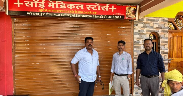 नगरीय क्षेत्र में मेडिकल स्टोर्स का औचक निरीक्षण, अनियमितताओं पर कार्रवाई