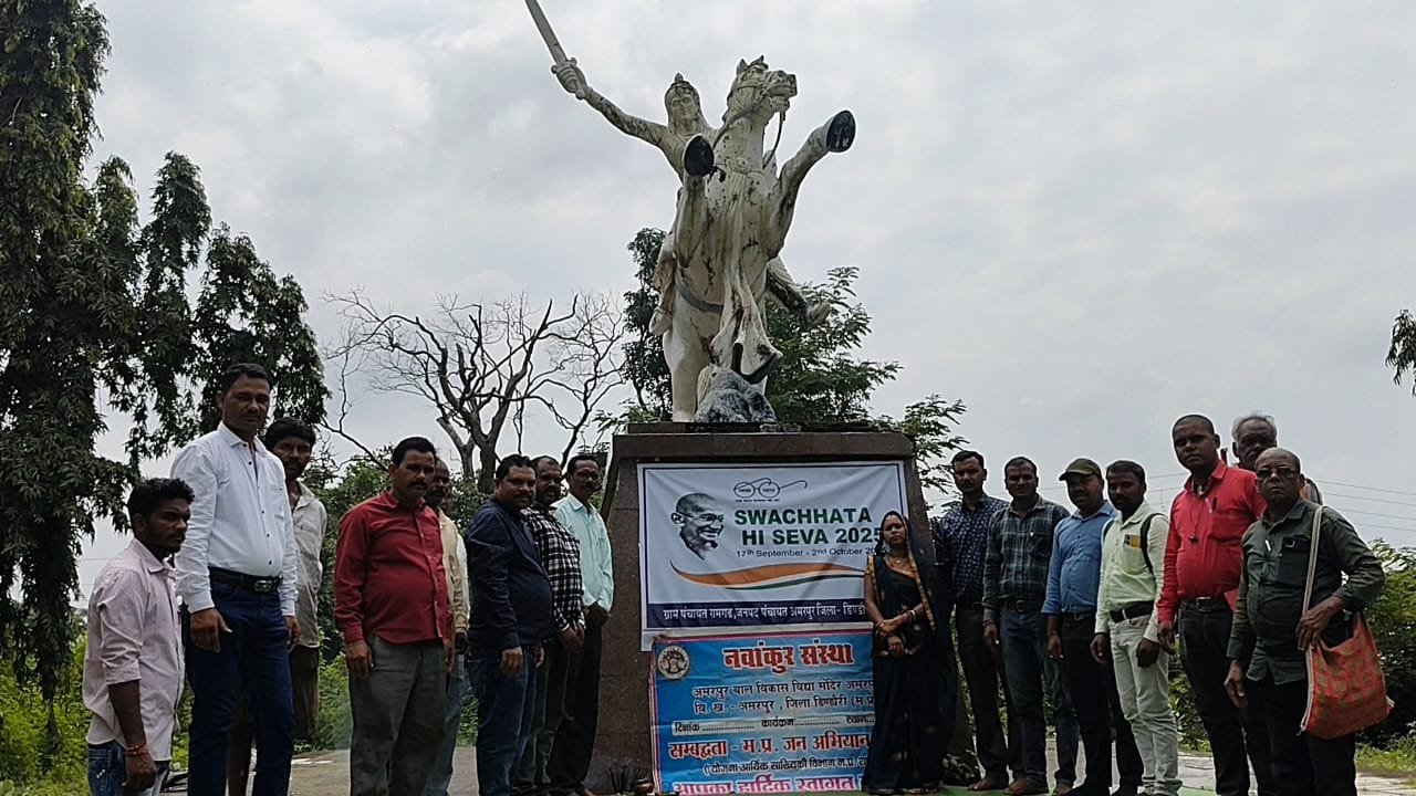 आज 17 सितंबर 2025 को रानी अवंती बाई स्मारक रामगढ़ विकासखंड अमरपुर में विकासखंड स्तरीय स्वच्छता ही सेवा पखवाड़ा कार्यक्रम का शुभारंभ जनपद अध्यक्ष हन्नु सिंह पट्टा स्थानीय सरपंच वंदना ठाकुर मुख्य कार्यपालन अधिकारी लोकेश नारनौरे विकासखंड समन्वयक अमरलाल धुर्वे जन अभियान परिषद तथा स्वच्छ भारत मिशन विकासखंड समन्वयक योगेंद्र वरकडे तथा वरिष्ठ नागरिक अशोक ठाकुर ओमप्रकाश ठाकुर की उपस्थिति में रानी अवंती बाई स्मारक में रानी अवंती बाई की पूजन अर्चन कर किया गया तत्पश्चात आंशिक रूप से श्रमदान द्वारा गार्डन की साफ सफाई की गई तथा अंत में उपस्थित समस्त सहभागियों को जनपद अध्यक्ष हन्नु सिंह पट्टा द्वारा स्वच्छता शपथ दिलाई गई तथा उपस्थित सहभागियों को अपने-अपने ग्रामों में स्वच्छता के प्रति लोगों को जागरूक करने तथा श्रमदान कर ग्राम के सार्वजनिक स्थल और घरों को स्वच्छ तथा 100% शौचालय प्रयोग करने हेतु प्रेरित करने के लिए कहा गया ।