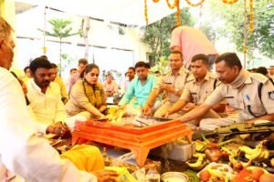 विजयादशमी पर्व के पावन अवसर पर पुलिस लाइन परिसर डिण्डौरी में पारंपरिक रूप से शस्त्र पूजन कार्यक्रम का आयोजन किया गया। इस अवसर पर माँ दुर्गा की प्रतिमा की पूजा-अर्चना कर शस्त्रों का तिलक एवं हवन-पूजन विधिविधान से संपन्न किया गया। कार्यक्रम में जिले की सुख-शांति एवं अमन-चैन की कामना की गई। इस अवसर पर माननीय विधायक  ओमप्रकाश धुर्वे, पुलिस अधीक्षक  वाहनी सिंह, अतिरिक्त पुलिस अधीक्षक डॉ. अमित वर्मा, एसडीओपी  सतीष द्विवेदी, जनप्रतिनिधि श्री पुरुषोत्तम मरावी,  विवेक गौतम, थाना प्रभारी कोतवाली दुर्गा प्रसाद नगपुरे, यातायात प्रभारी  सुभाष उइके, रक्षित निरीक्षक  कुवंर सिंह ओलाड़ी सहित अन्य अधिकारी/कर्मचारी बड़ी संख्या में उपस्थित रहे। पूजन उपरांत पुलिस अधीक्षक  वाहनी सिंह एवं जनप्रतिनिधियों ने उपस्थित सभी पुलिस बल के जवानों को विजयादशमी पर्व की शुभकामनाएँ दीं। उन्होंने कहा कि यह पर्व सत्य की असत्य पर विजय तथा धर्म की अधर्म पर विजय का प्रतीक है। उन्होंने जवानों से अपेक्षा की कि वे सदैव कर्तव्यनिष्ठा, अनुशासन एवं जनसेवा की भावना से कार्य करते हुए जिले की कानून-व्यवस्था को सुदृढ़ बनाए रखें। माननीय विधायक ओमप्रकाश धुर्वे ने भी विजयादशमी पर्व की शुभकामनाएँ देते हुए कहा कि यह पर्व हमें समाज में भाईचारा, आपसी सौहार्द और सत्य के मार्ग पर चलने की प्रेरणा देता है। उन्होंने पुलिस बल के कार्यों की सराहना करते हुए आमजन की सुरक्षा और शांति व्यवस्था बनाए रखने में निरंतर तत्पर रहने की अपील की। कार्यक्रम के अंत में प्रसाद वितरण कर शस्त्र पूजन समारोह सौहार्दपूर्ण एवं श्रद्धामय वातावरण में सम्पन्न हुआ। इसी क्रम में जिले के सभी पुलिस थानों एवं चौकियों में भी शस्त्र पूजन का आयोजन थाना एवं चौकी प्रभारियों द्वारा किया गया।